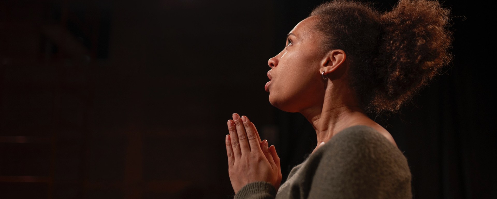 stare up at scripture on screens projected—
